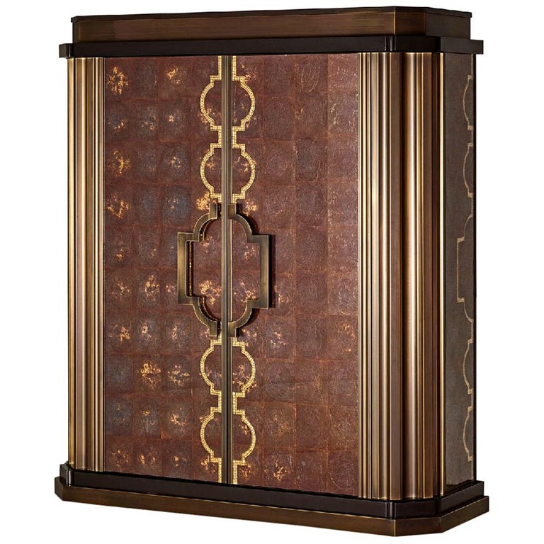 Cabinet Bronze Leaf Glass Drawers Decorated Tiny Mosaic Gold Mosaic Dec On Doors For Sale At 1stdibs
